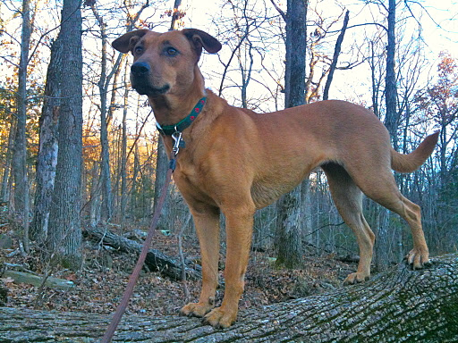 Huh. Nice trail, really remote. No one around. I should probably tell someone I’m out here. After all, if I fall in the woods, no one’s going to hear me, and it might be days before anyone realizes I’m missing. Sadie isn’t the Lassie type to run for help. Hmmm…